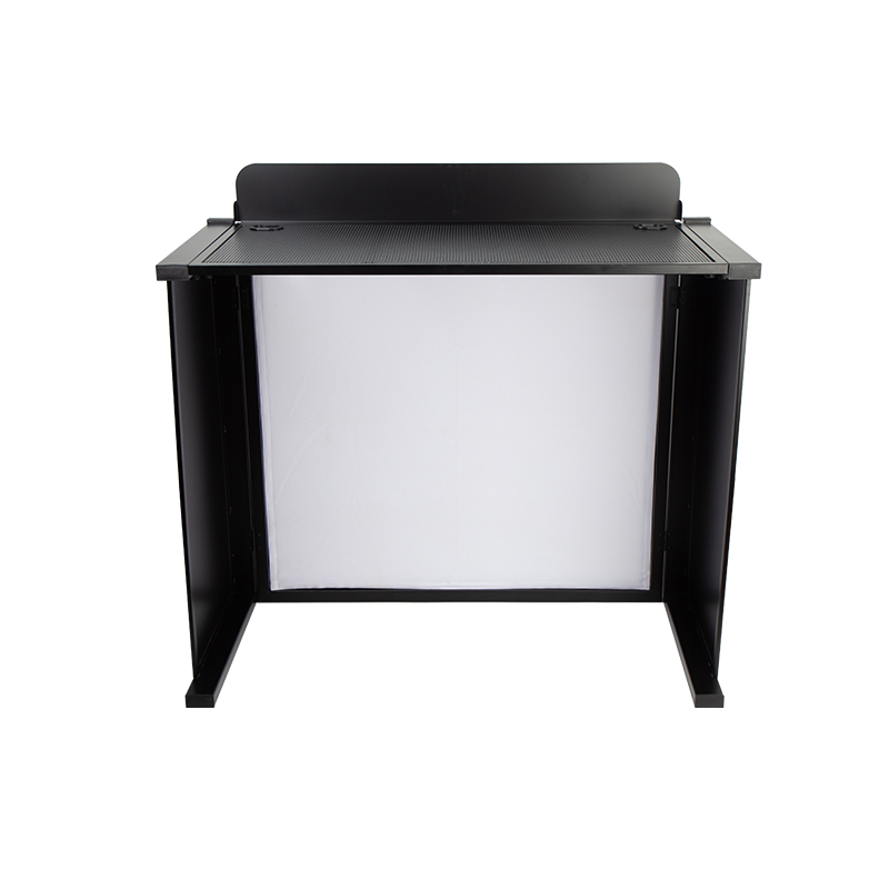 The FS013 Foldable DJ Tables feature a durable full steel frame with a powder-coated finish in white or black. Designed for professional mobile DJs, they set up instantly with a strong desk and backstop to secure gear. The front nonopaque scrim provides a sleek, branded look while allowing light through. Foldable design with carrying bag ensures effortless transport and storage. Perfect for gigs, weddings, and events.