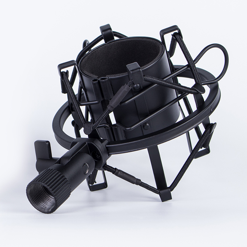 This is a universal clamp-on style microphone shock mount, which is ideal for most popular podcast microphones. It is made of strong metal and high quality elastic band and anti-slip EVA padding.